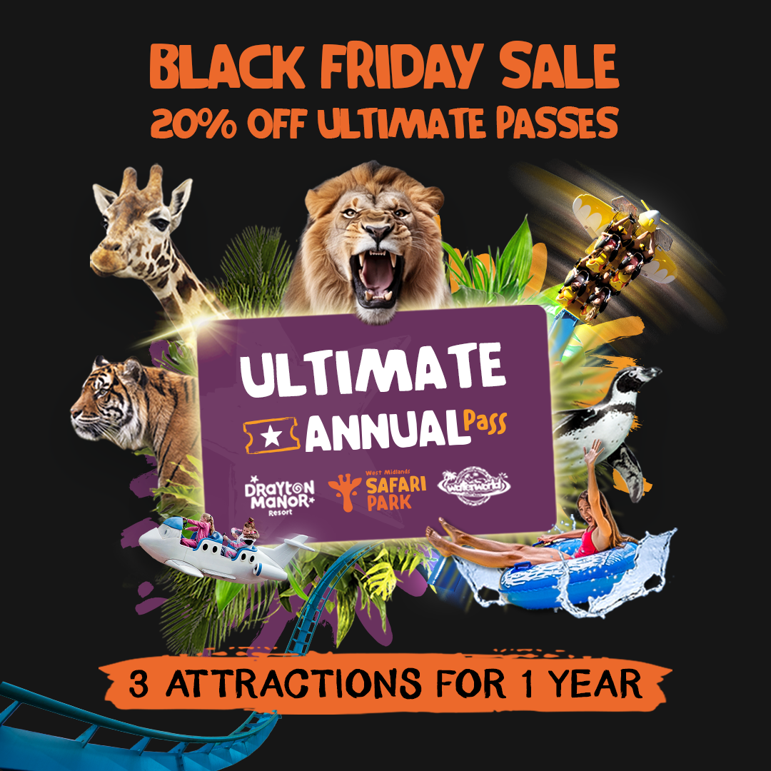 Your all-access ticket to unlimited thrills across three amazing attractions - West Midlands Safari Park, Drayton Manor Resort, and Waterworld Aqua Park & Adventure Mini Golf.
