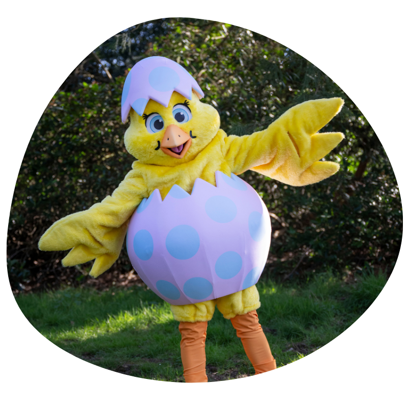 Our eggcitable friend, Chirpy Chick will be out and about at intervals throughout the day, to stretch her wings and have pictures taken with you!