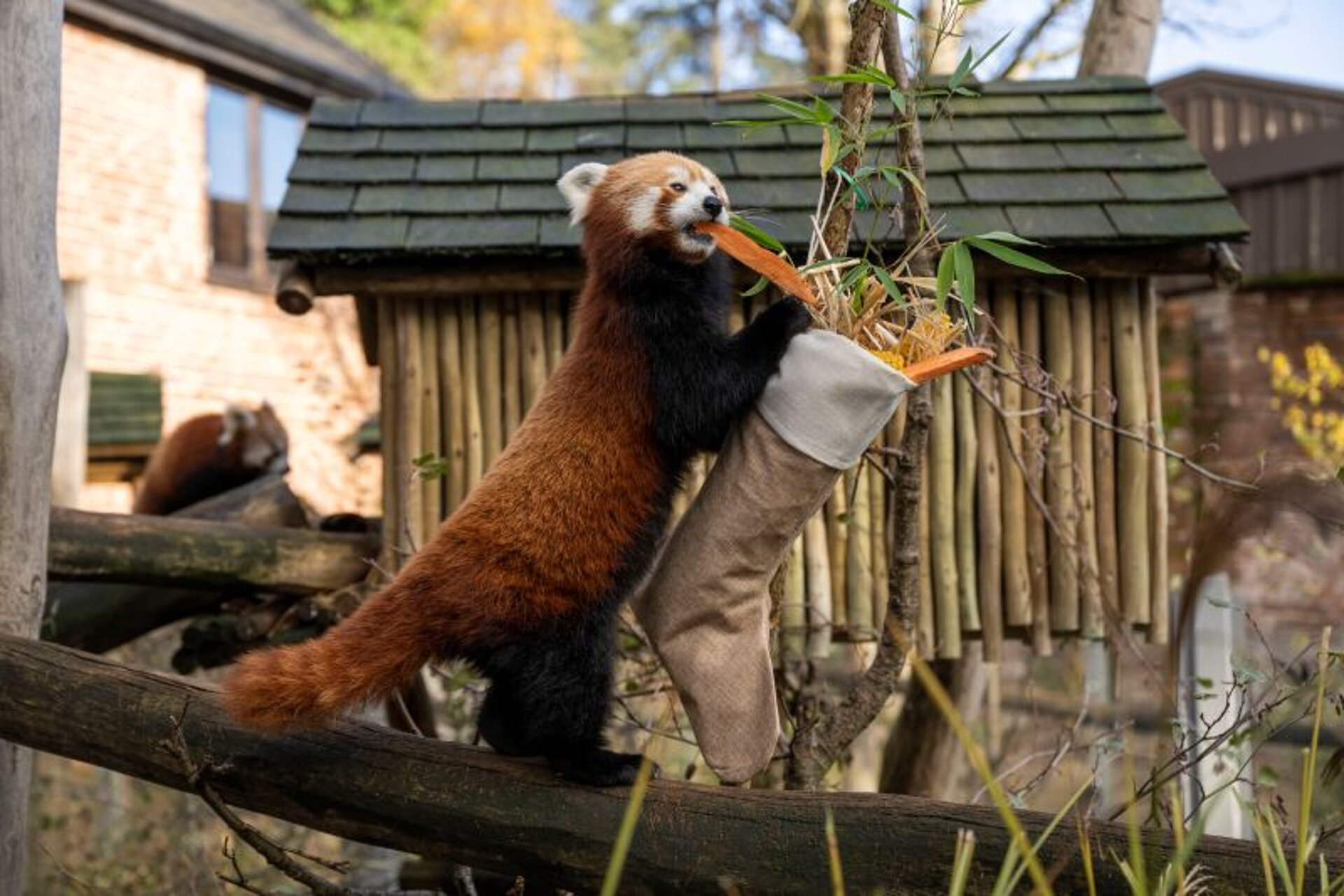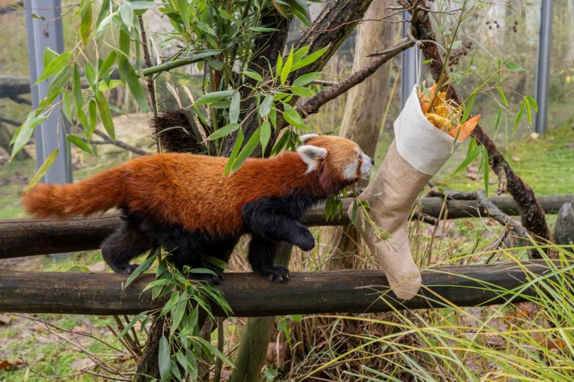 Whilst not as boisterous as the tigers, the red pandas carefully investigated their stockings before delicately extracting the tasty treats inside, appreciating every last bite.