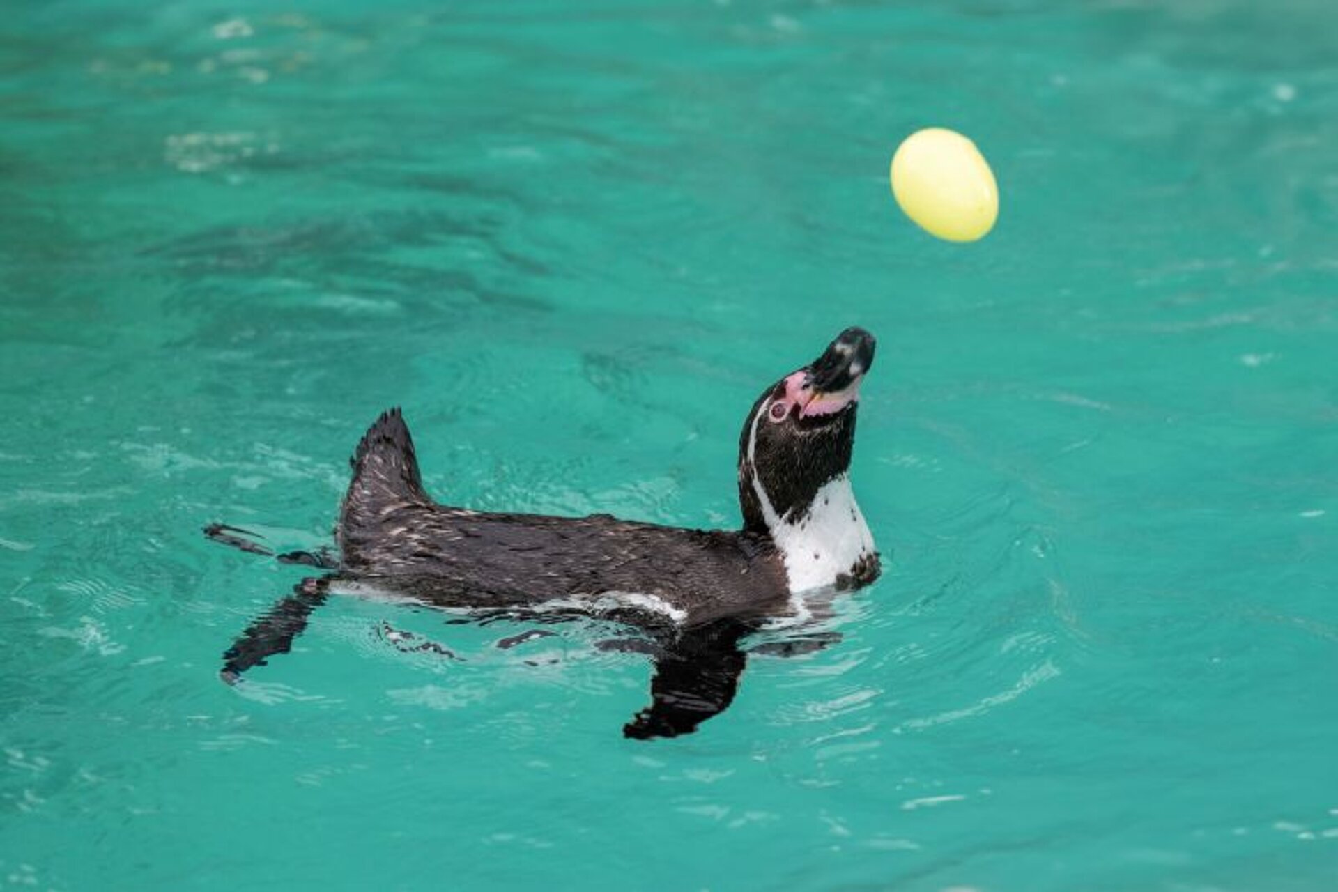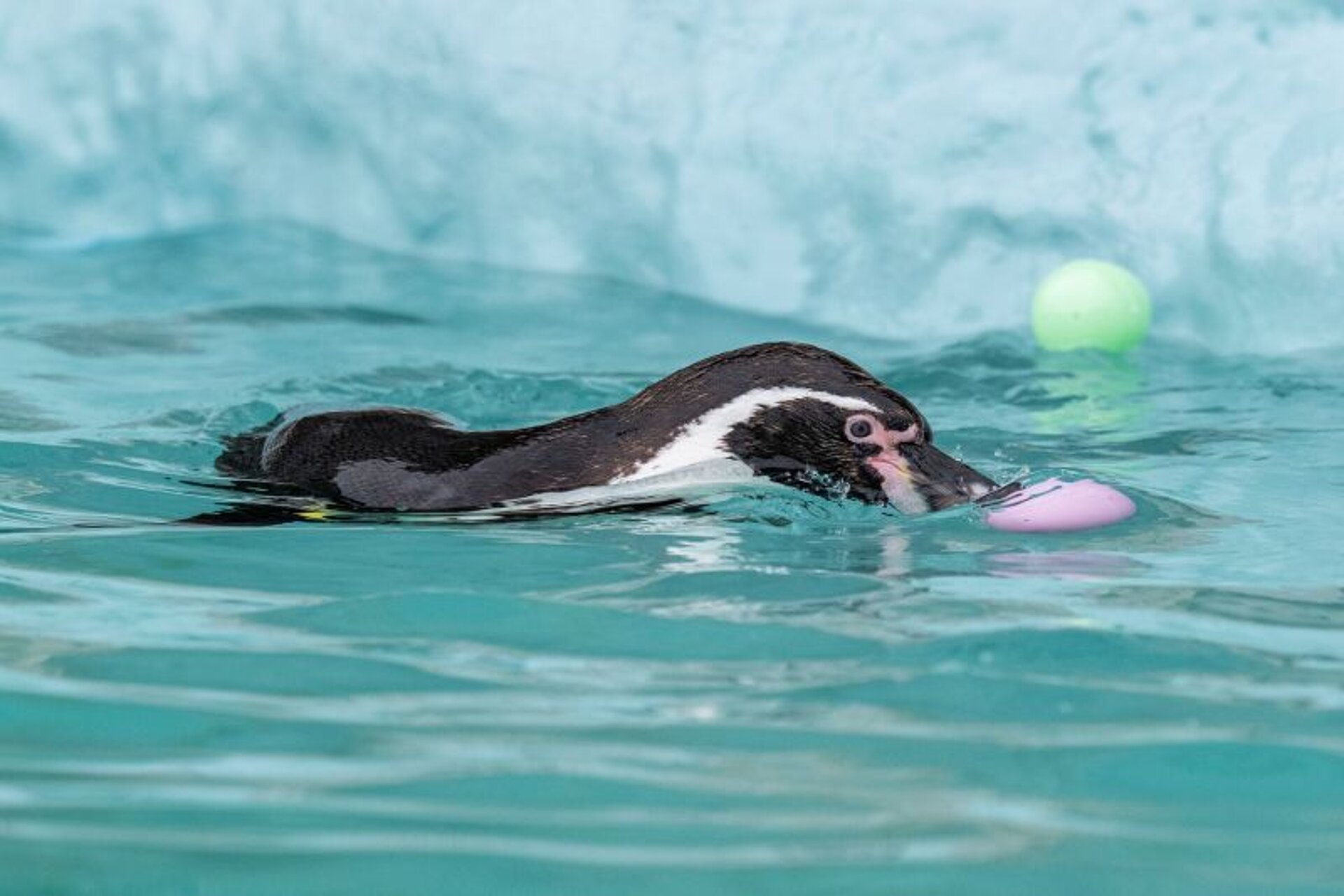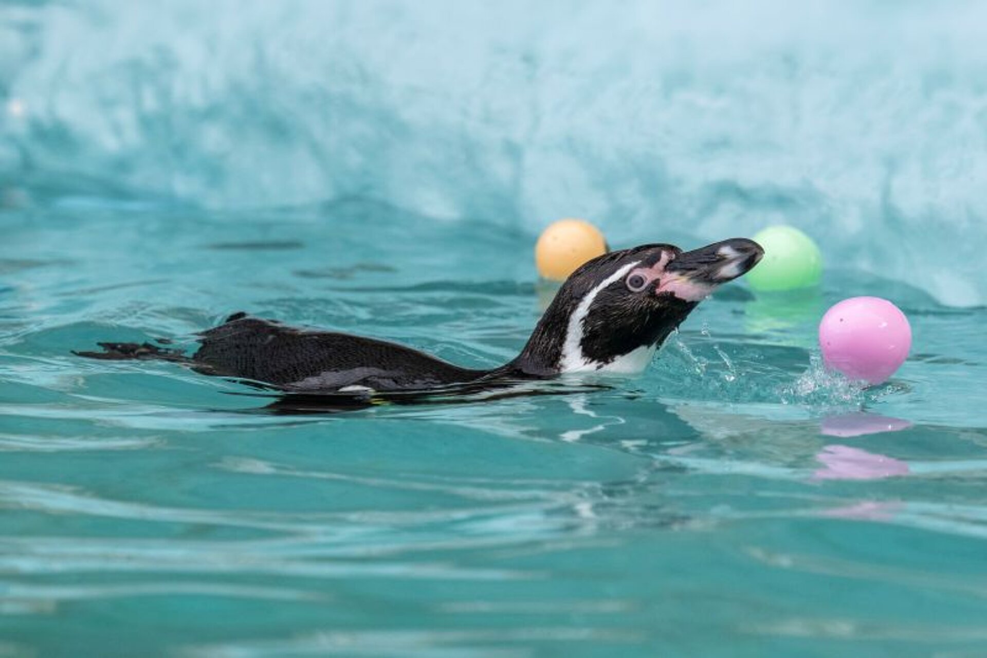 Deputy Head Keeper of the Discovery Trail, Vicky McFarlane, said, “We are always looking for egg-citing new enrichment items for our colony of Humboldt penguins - they can be quite p-p-p-picky with what they want to interact with. Thankfully the penguins were in the mood for celebrating Easter with some colourful egg toys! We all enjoy some eggs-tra snacks for Easter and the penguins are no egg-ception. The greedier penguins enjoyed some fish in their egg hunt while the younger penguins love playing with small, floating egg toys in the water, which is a great way to get some energy out of them during the bank holiday weekend!”