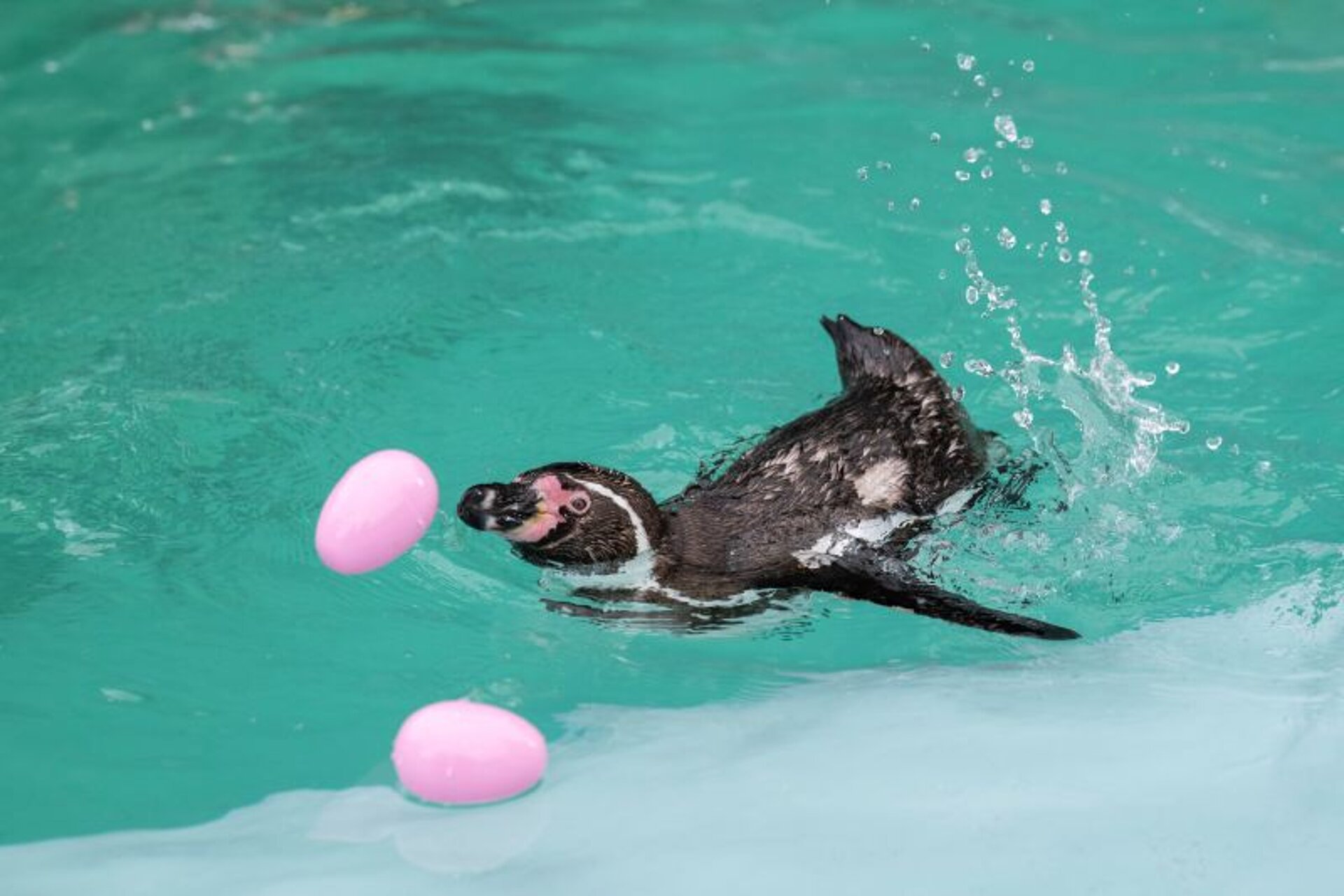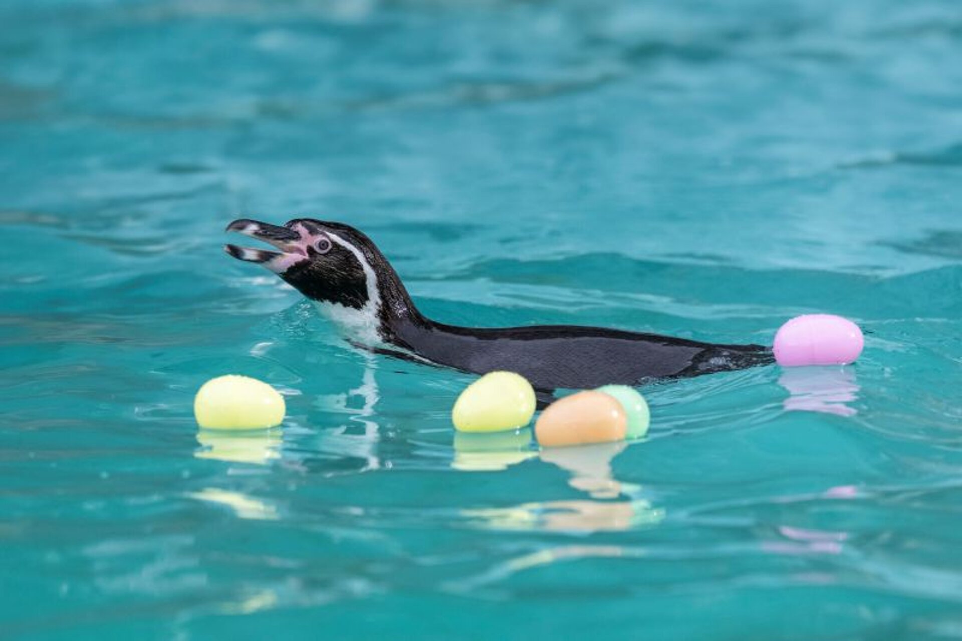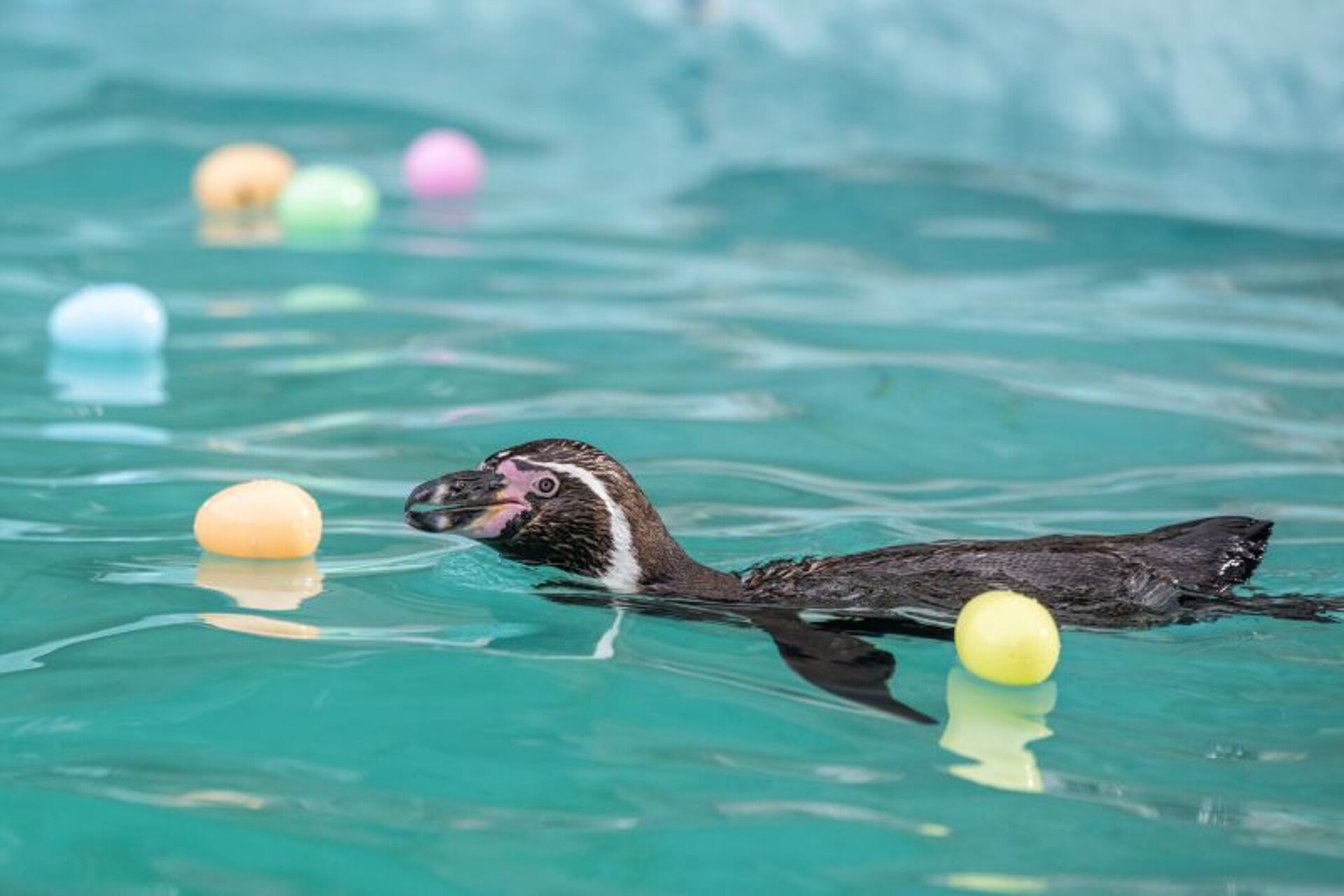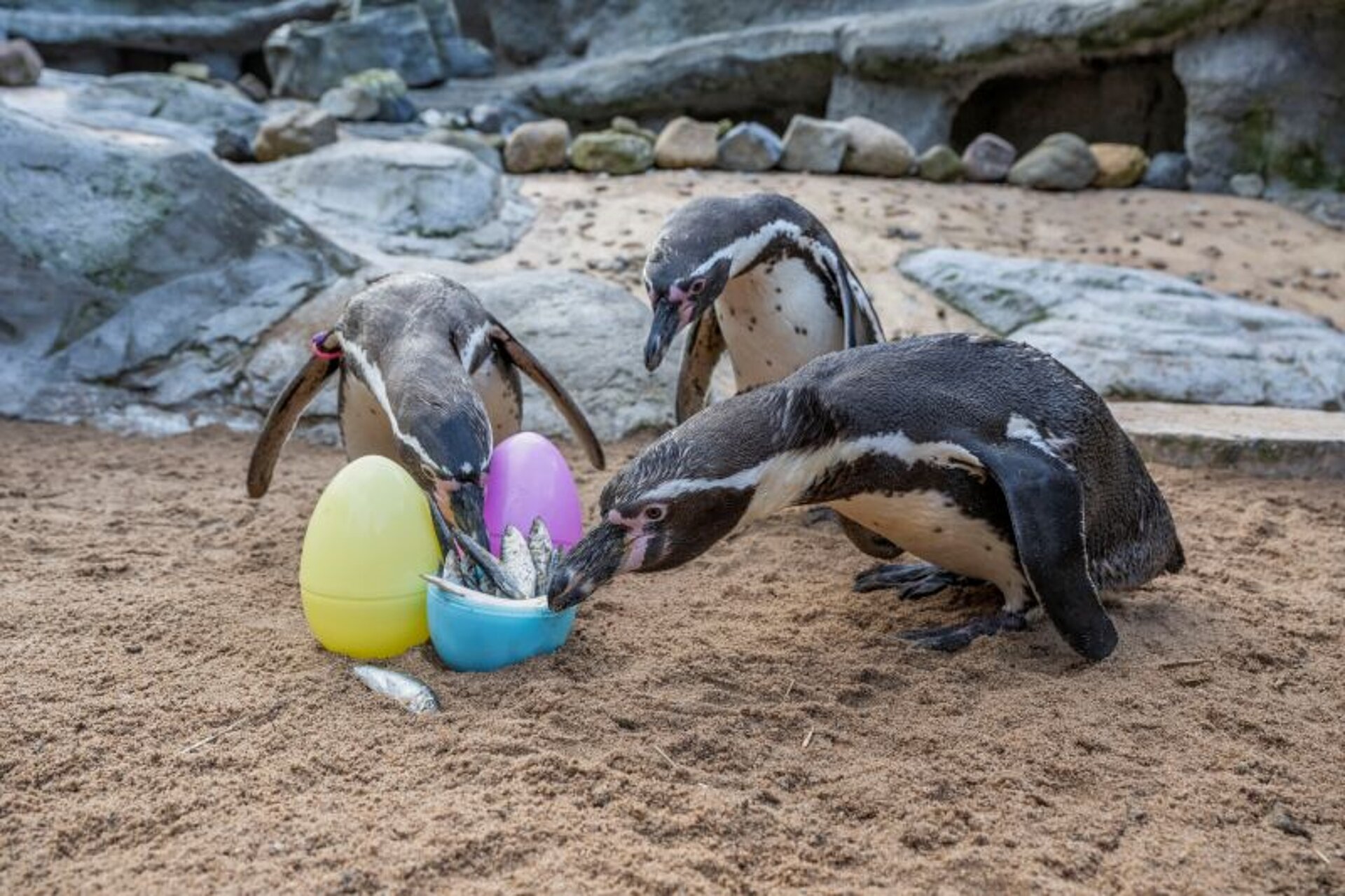 Keepers swapped the waddle of 15 penguins’ normal morning feed for a seasonal twist, introducing a variety of egg-themed surprises to their habitat.