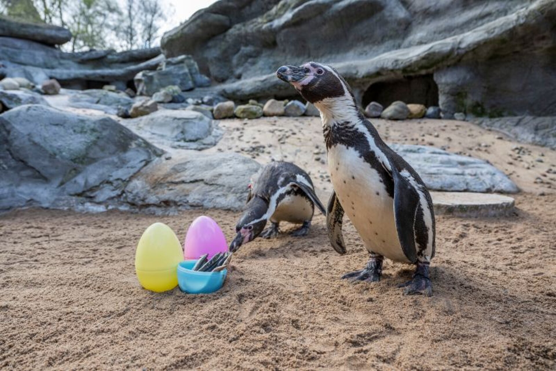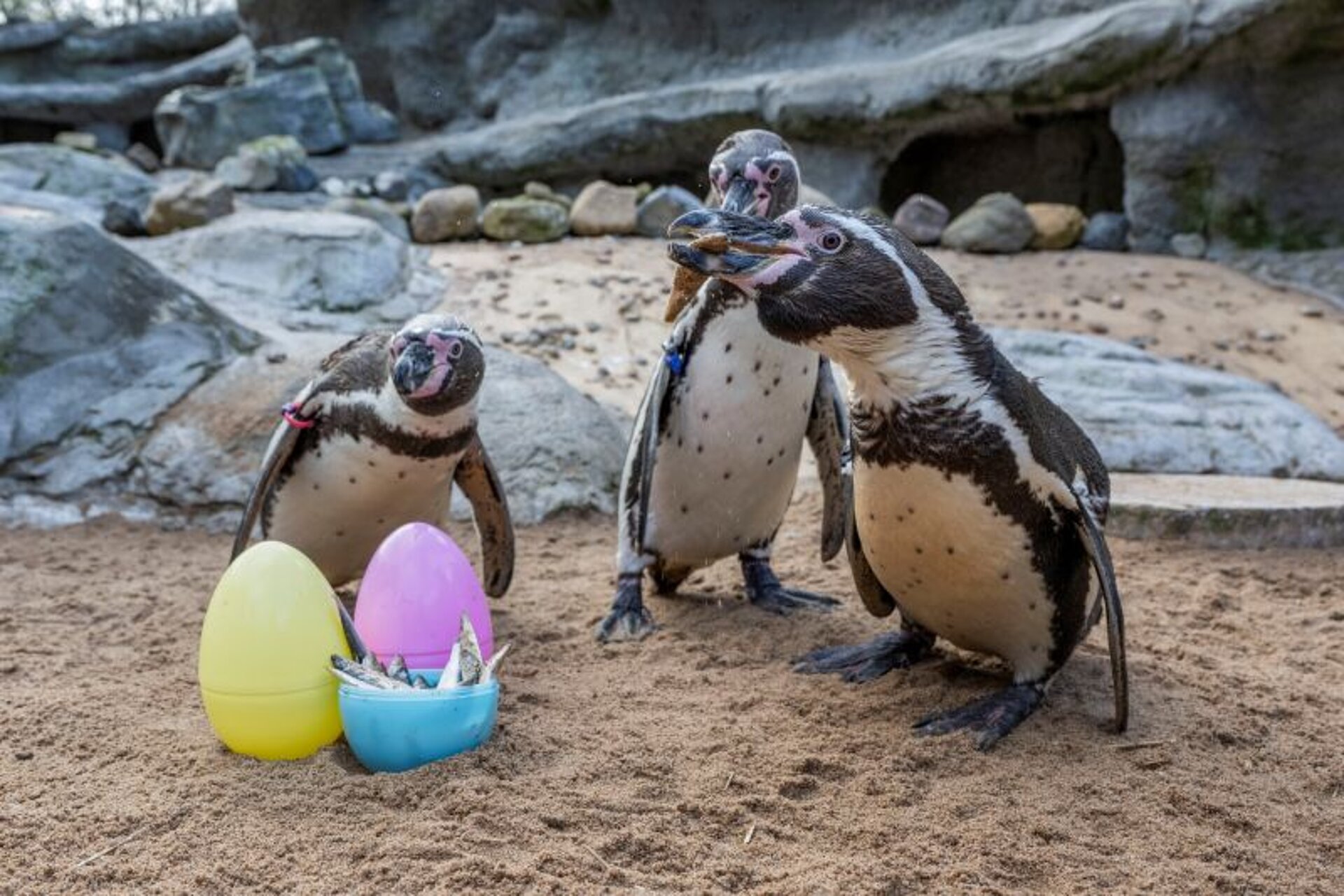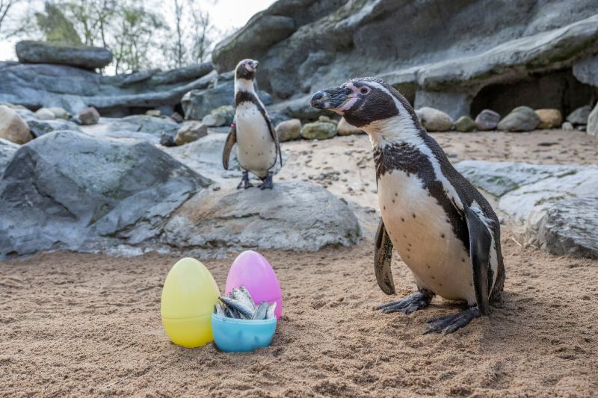 Guests can see the Humboldt penguins in the Safari Walk area of the Park, which is included, along with the Easter activities, in the admission charge.