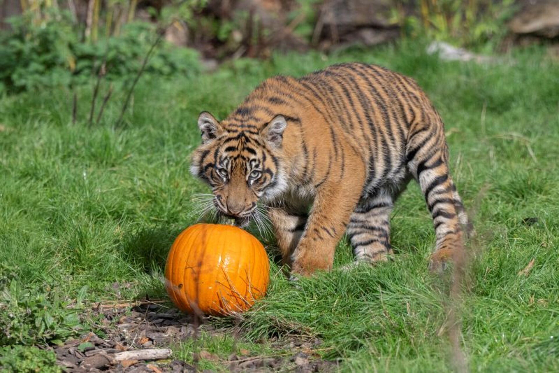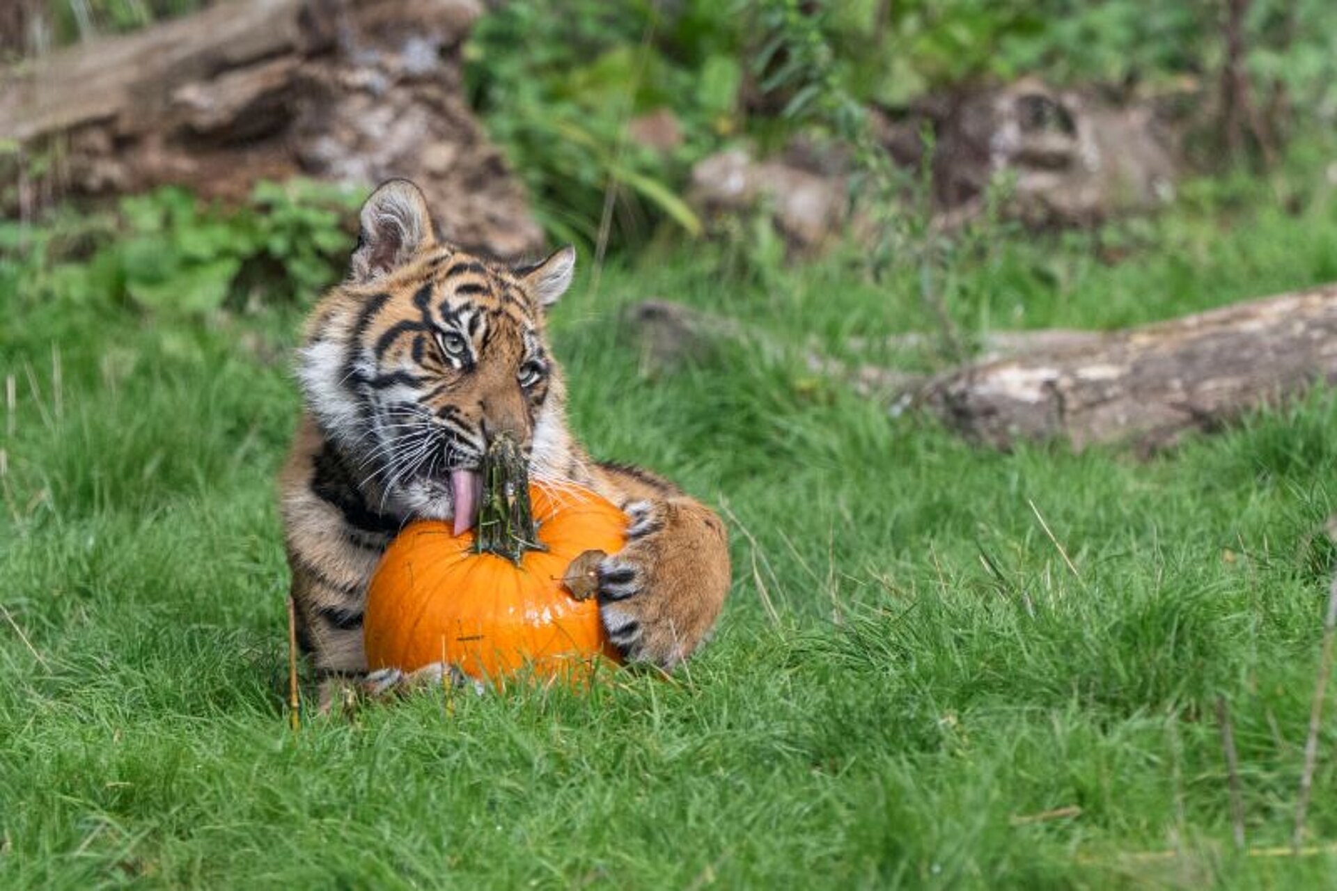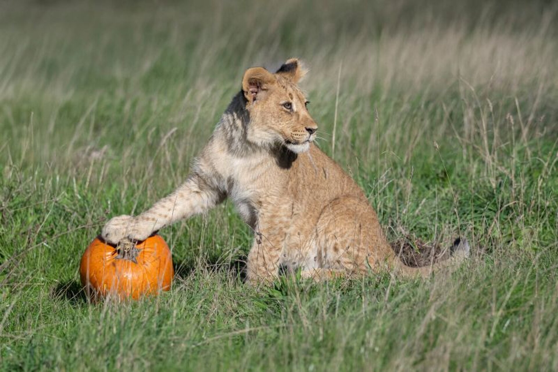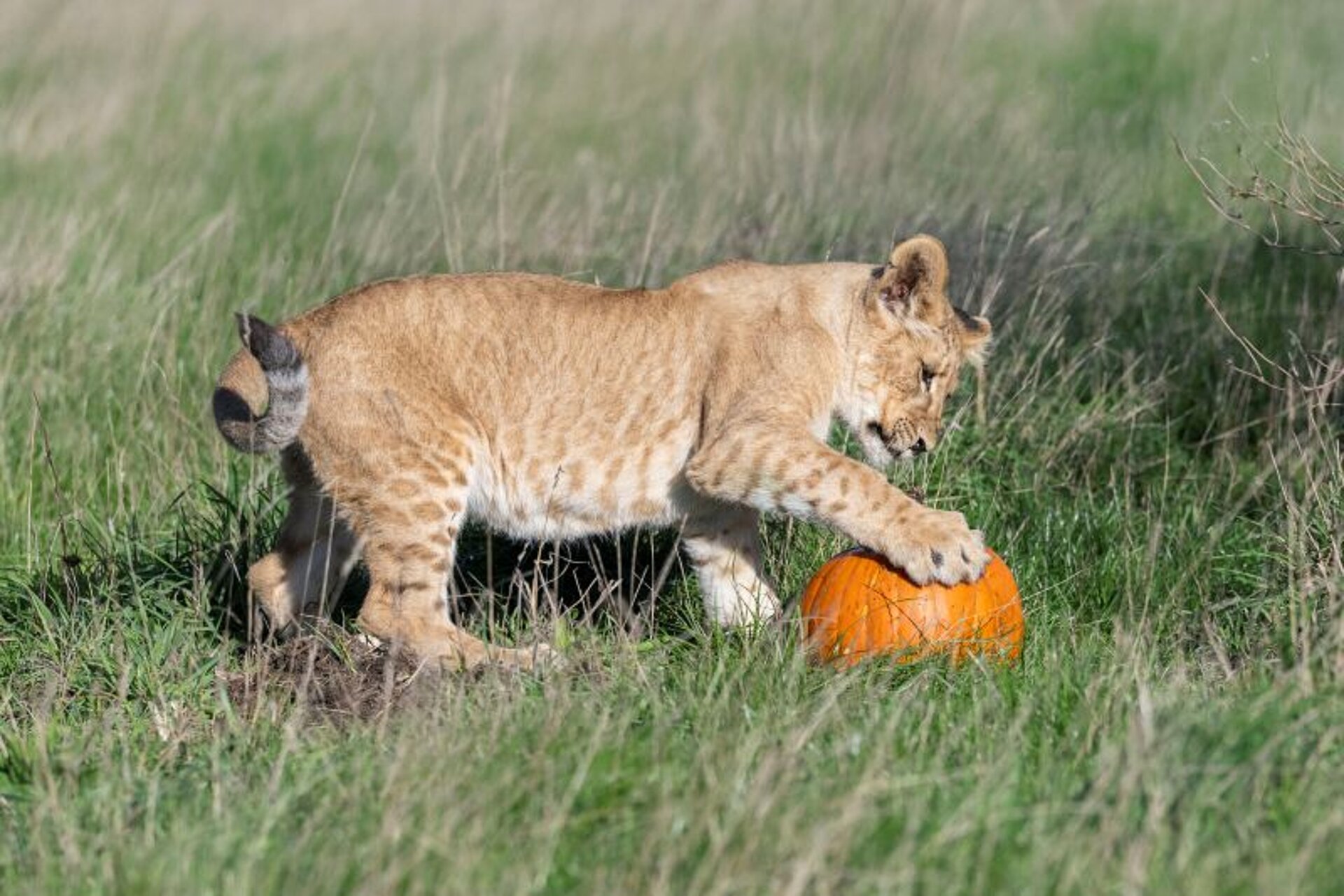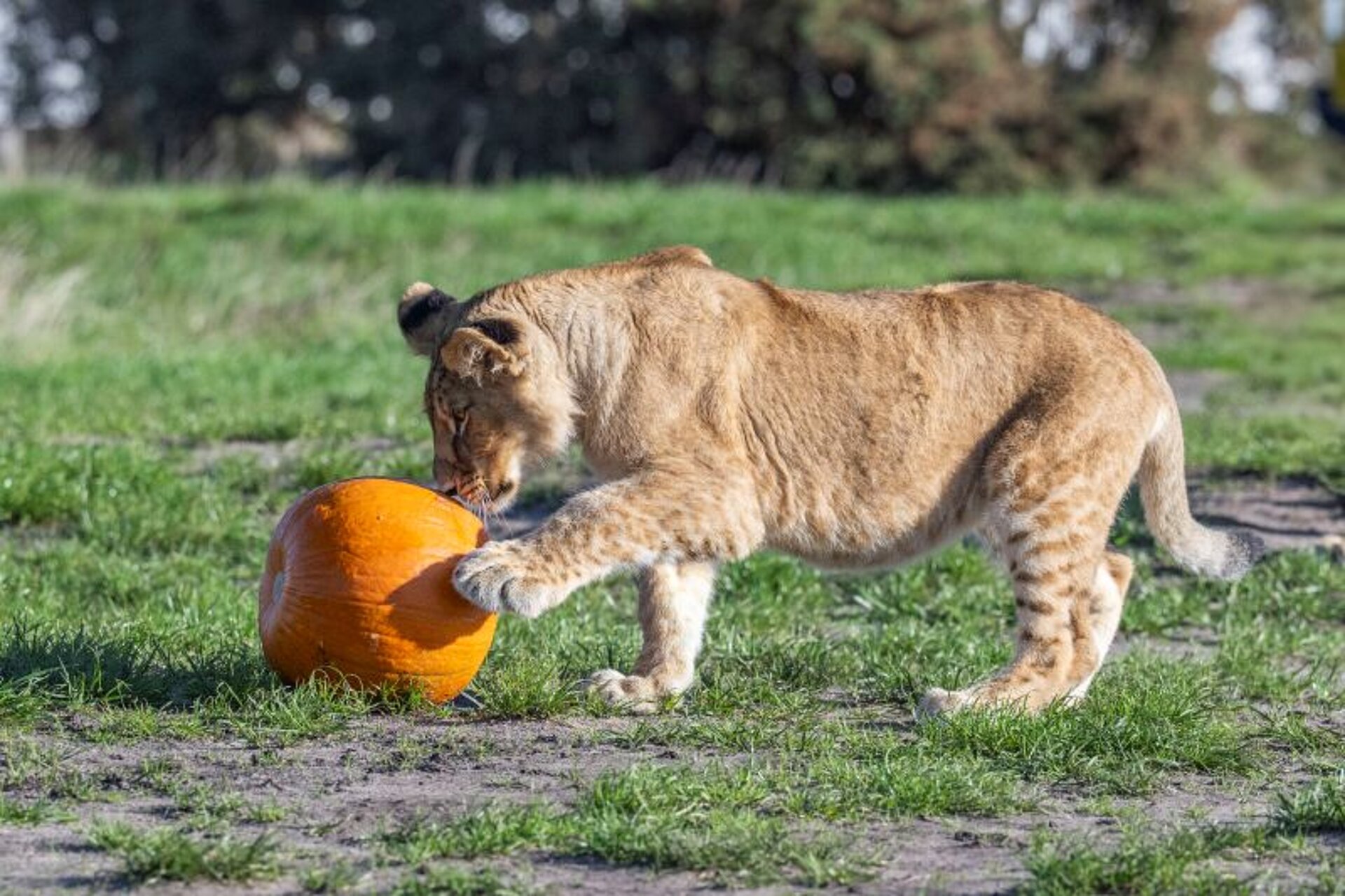 Senior Keeper of Carnivores, Shuana Jenkins, said, “Any novelty item makes excellent enrichment for our animals, giving them a chance to use some of their natural, species-typical behaviours, whilst interacting with it. The team have loved watching both our lion and tiger cubs get into the Halloween spirit with their first experience of pumpkins, with all the cubs showing just how strong they are with the unexpected ease it's taken for them to carry them around!