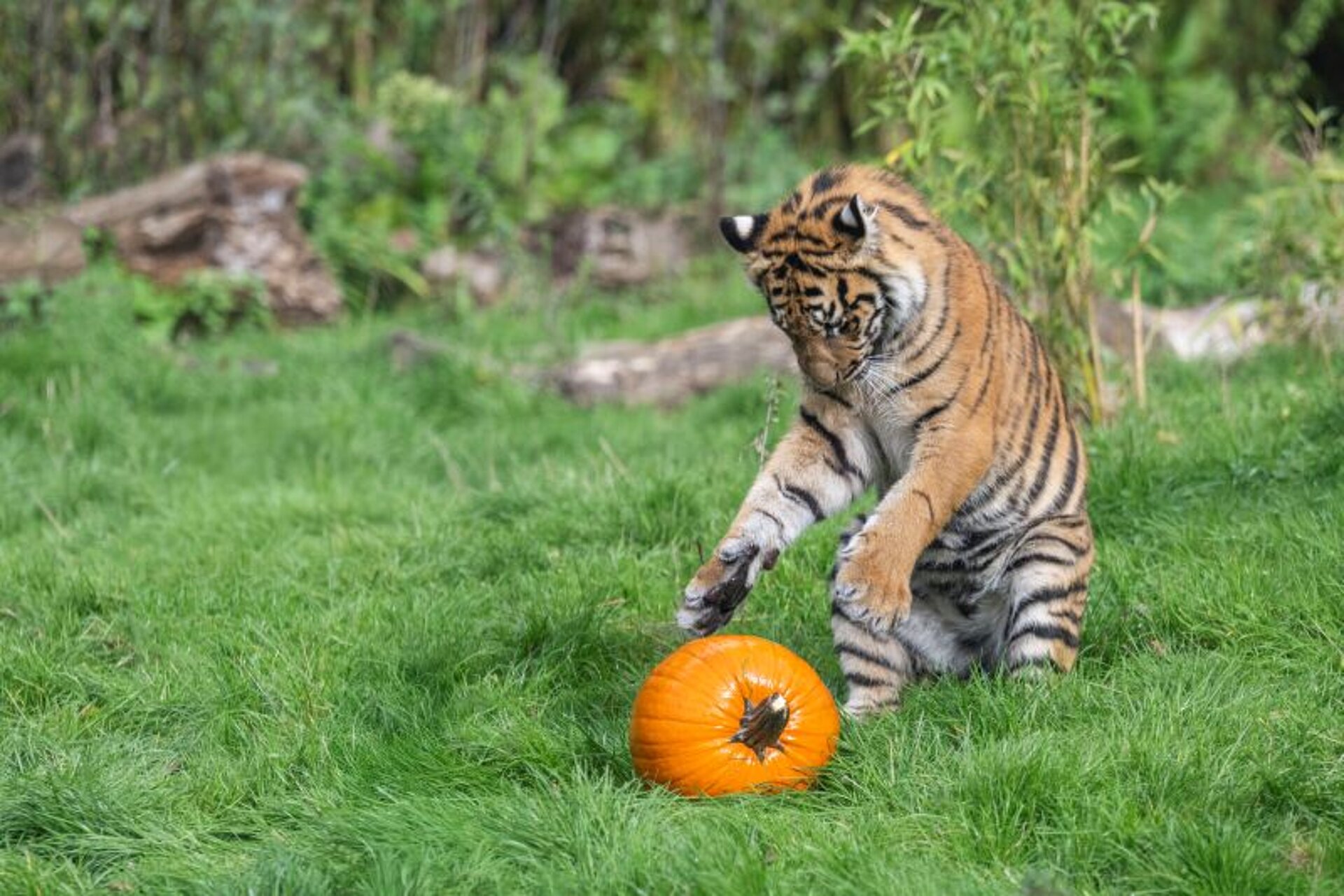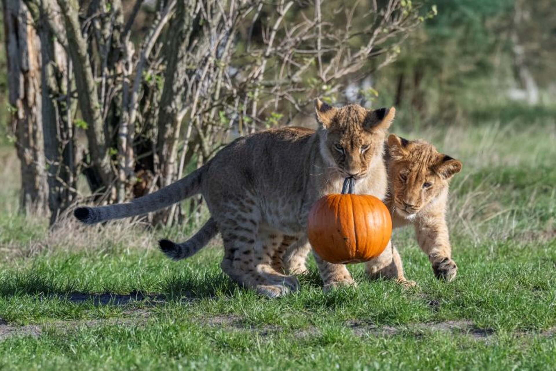 The lion and tiger cubs have been enjoying playing with pumpkins, as we get ready to celebrate their very first Halloween.