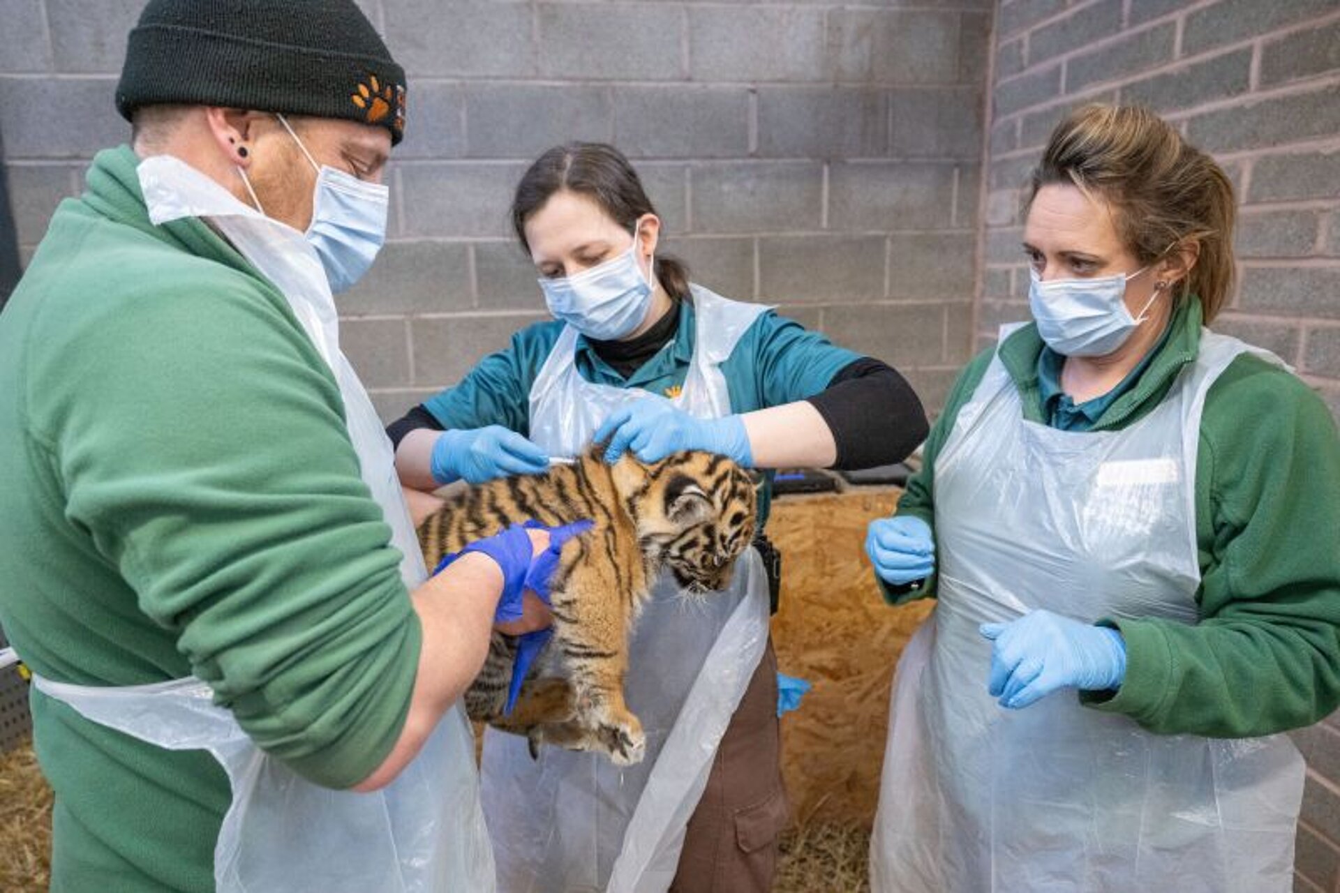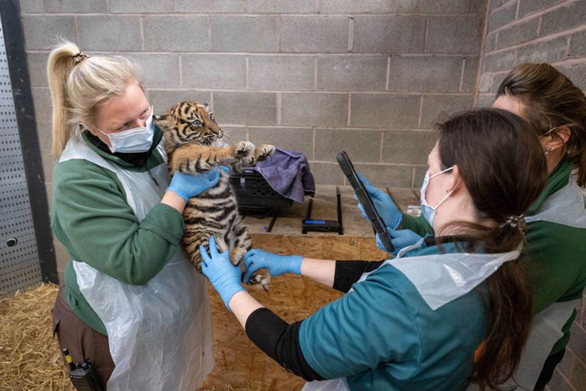 Veterinary Surgeon, Lindsey Baines, said, “We are delighted that we have three healthy Sumatran tiger cubs. The vet team have been monitoring their development carefully since they were born, through the CCTV to ensure there were no issues. Their first health checks and vaccinations all went swimmingly, and they are developing as we would expect with no concerns.”