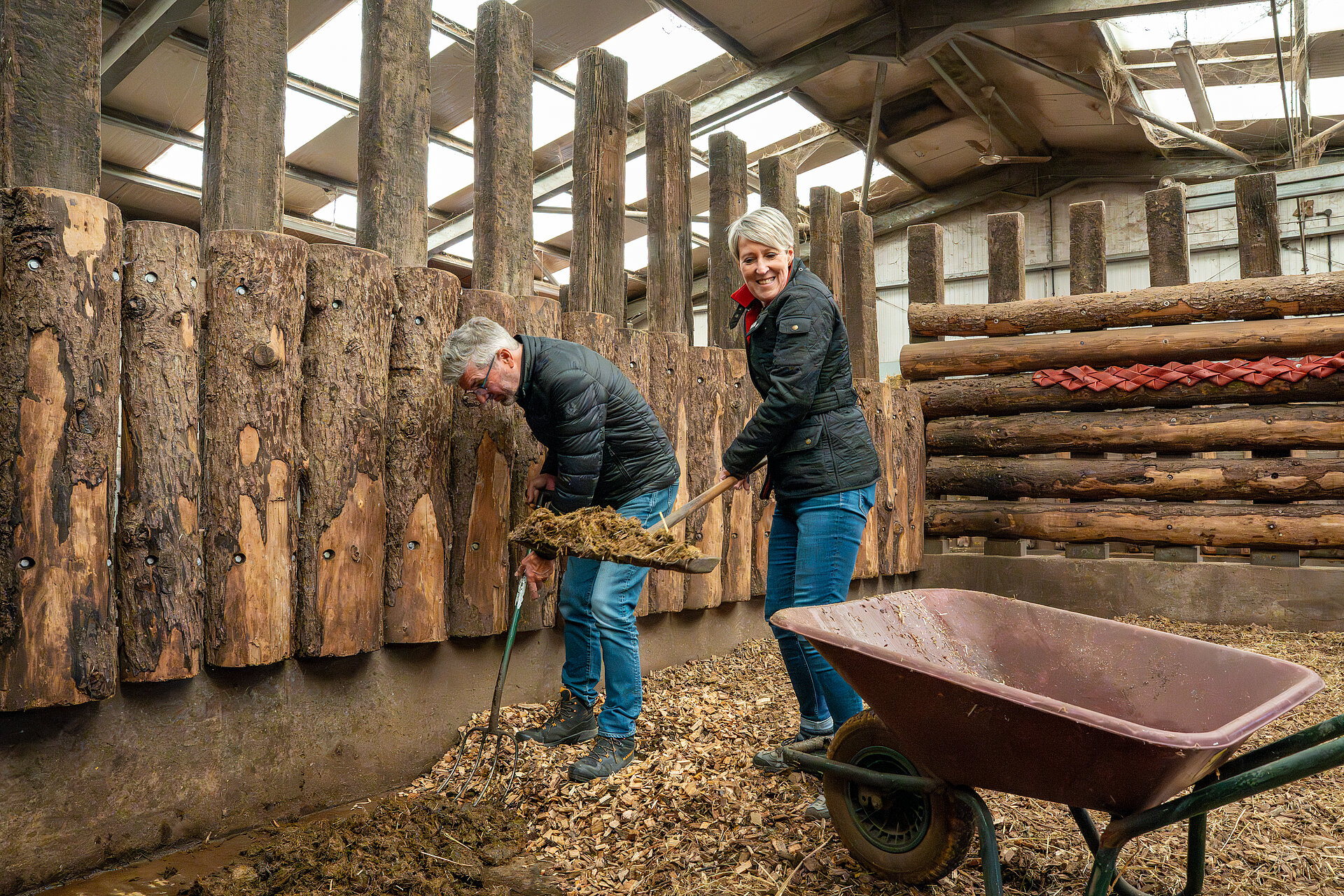 - Now it is time to clean out the Rhino House, remove the muck, and turn the bark – so we hope you are prepared for hard work!